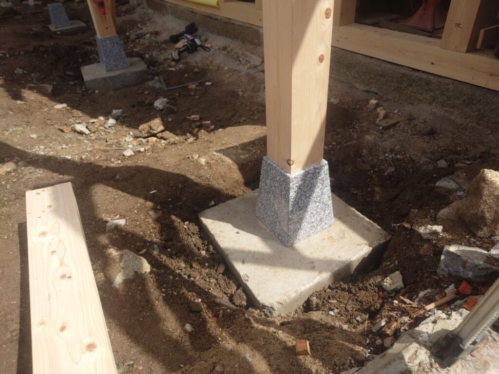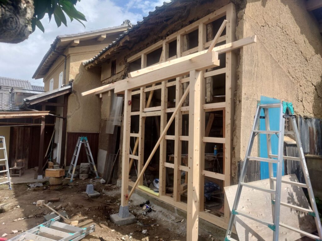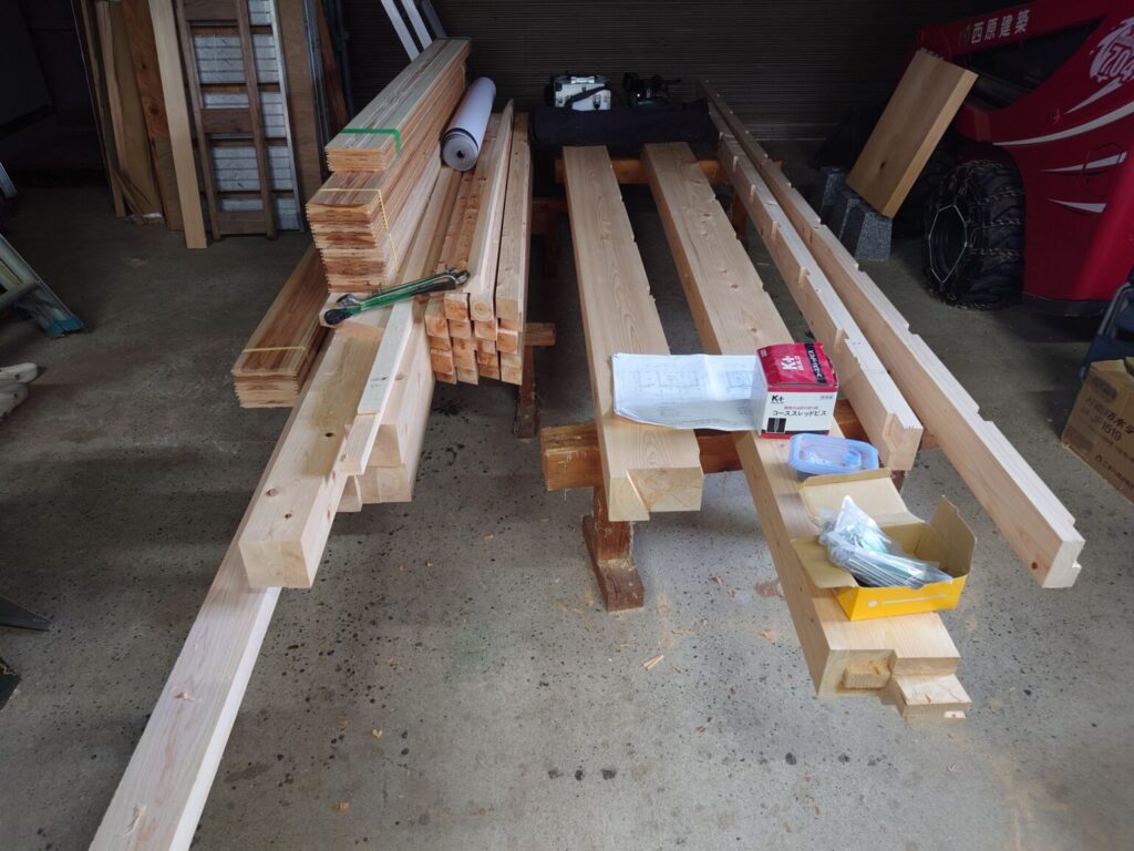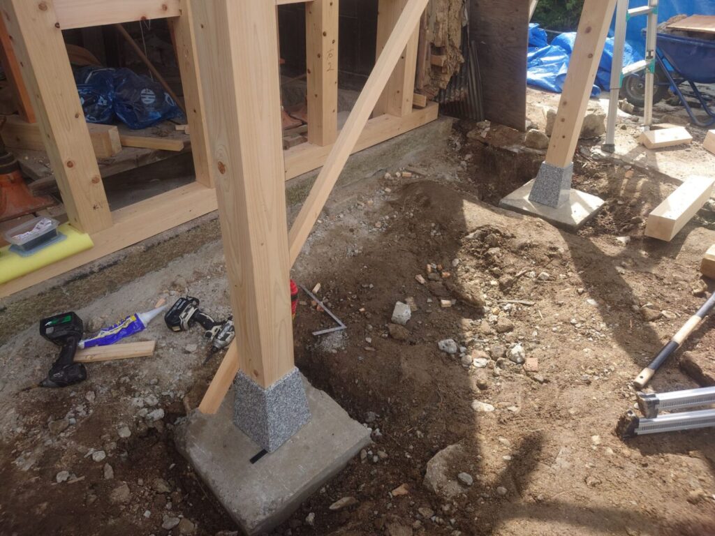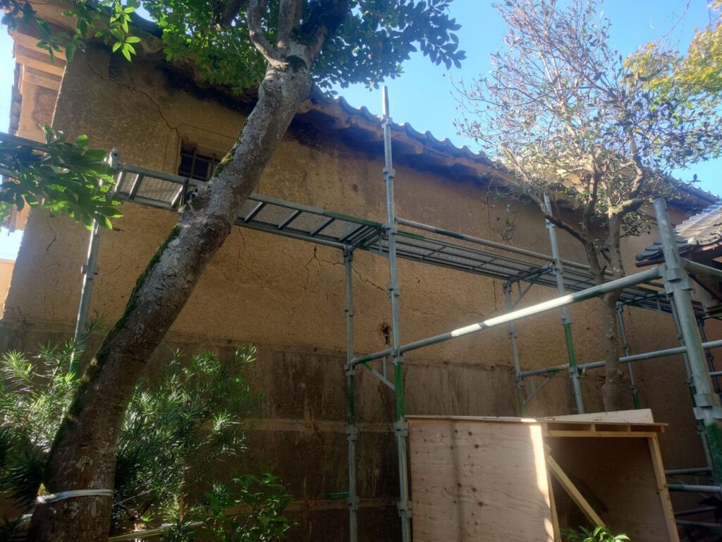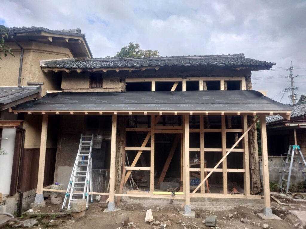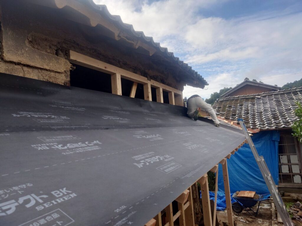 翌日に瓦屋さん、左官屋さん、板金屋さんがスムーズに仕事が出来るように足場を組みました。